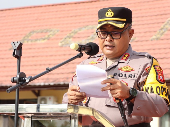 MELAWI || Kapolres Melawi AKBP Harris Batara Simbolon, S.I.K., S.H., M.Tr. Opsla bertindak selaku inspektur upacara dalam Apel Gelar Pasukan Operasi Zebra Kapuas 2025 dan membacakan 10 (sepuluh) sasaran prioritas saat membacakan amanat di lapangan apel bhayangkara polres melawi, Senin (17/11/2025).