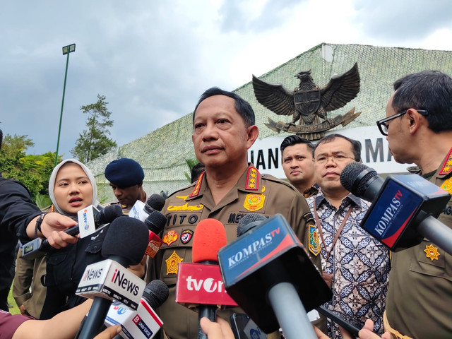 Mendagri Tito Karnavian memberi keterangan pers di Akademi Militer Magelang.