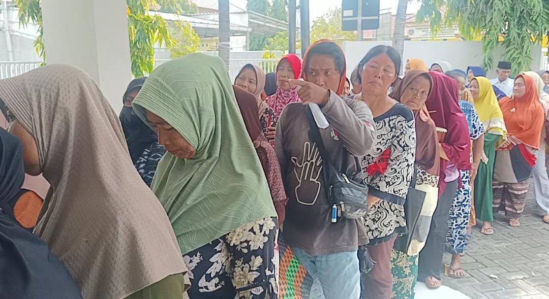 Mereka tampak menunggu giliran masuk ke aula untuk mengecek berkas yang dibawa. Para penerima bantuan ini merupakan warga tidak mampu yang masuk dalam Data Tunggal Sosial Ekonomi Nasional ( DTSEN), Senin (24/11/2025).