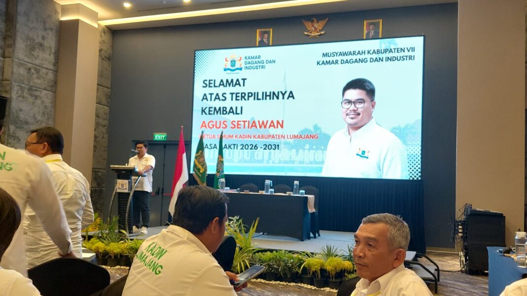 LUMAJANG || Agus Setiawan resmi kembali terpilih sebagai Ketua Umum Kamar Dagang dan Industri (Kadin) Kabupaten Lumajang untuk periode 2026-2031. Hasil ini ditetapkan dalam Musyawarah Kabupaten (Muscab) VII Kadin Lumajang yang digelar pada hari Senin, (20/4/2026), di Hotel Aston Lumajang.