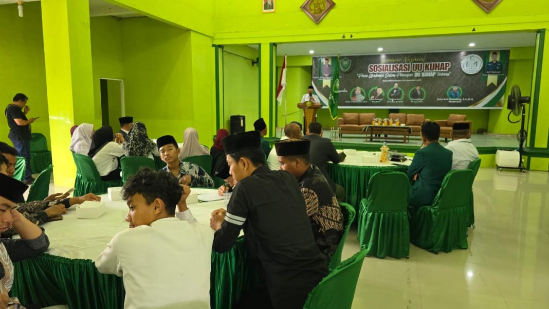 Sosialisasi UU KUHAP dengan tema “Peran Akademisi Dalam penerapan UU KUHAP Terbaru”, Senin (8/12/2025) di Aula Univa Medan.
