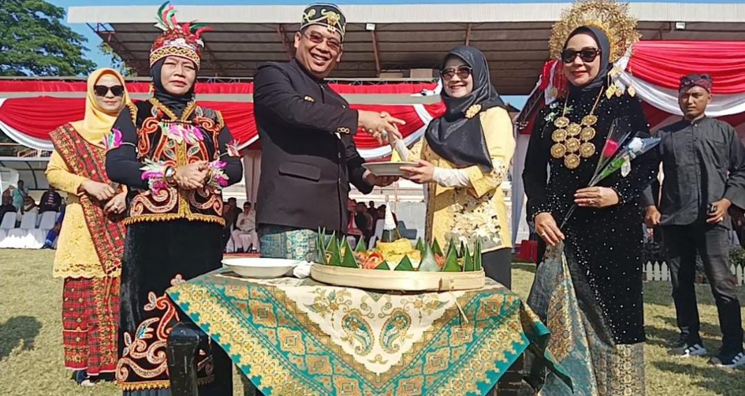 Hadir pula jajaran Forkopimda, Pj Sekda Rey Suwigtyo beserta istri, tokoh agama dan tokoh masyarakat yang mengenakan pakaian adat nusantara.