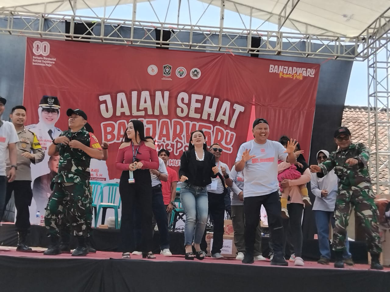 Jalan sehat dikemas sedemikian rupa agar punya daya tarik tersendiri. Korgan Banjarwaru Rame Poll.