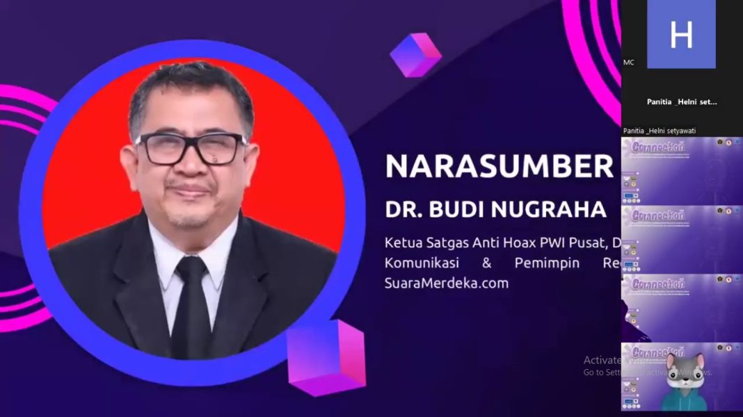 Dalam acara yang merupakan implementasi praktik dari Mata Kuliah Event Management (Dosen Pengampu Riki Arswendi, M. I. Kom) ini, Pemred suaramerdeka.com, ini menegaskan jurnalis harus tetap mematuhi kode etik jurnalistik dengan melakukan verifikasi fakta secara ketat sebelum mempublikasikan informasi.