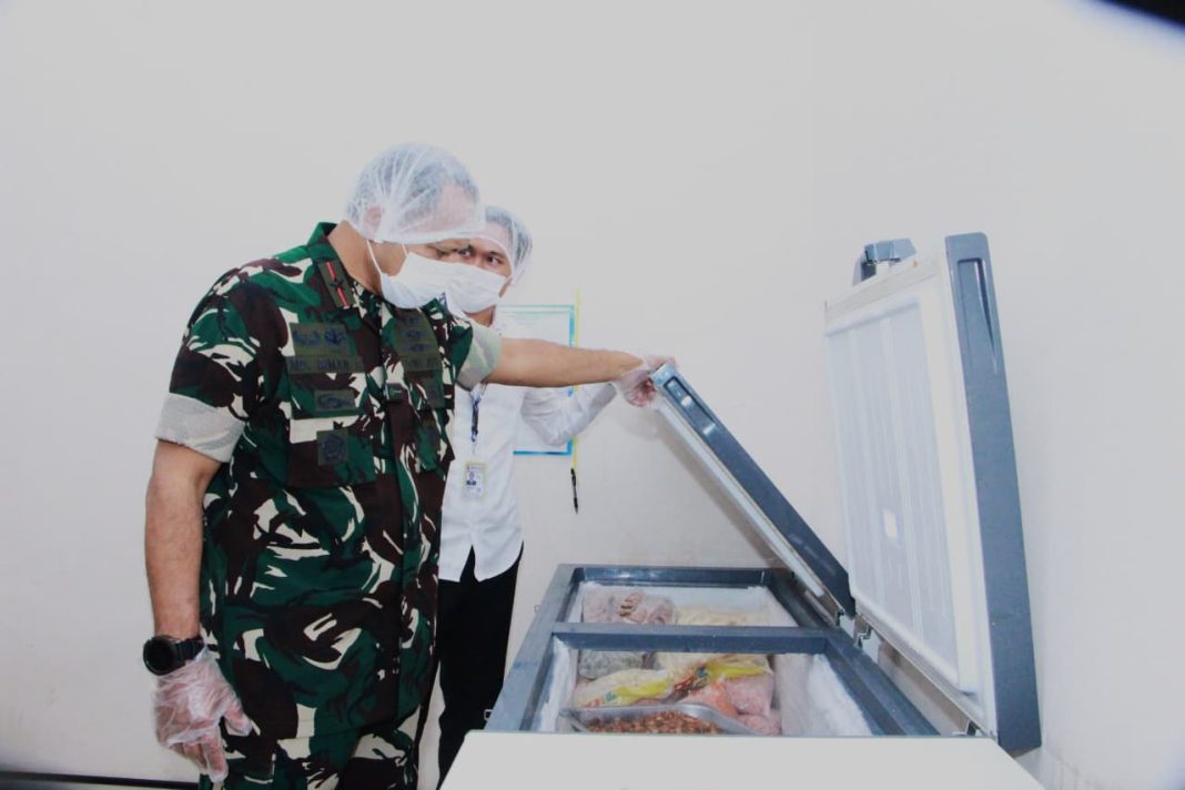 Dalam peninjauan, Danlanud melihat secara detail tahapan pengolahan makanan, mulai dari pemilihan bahan baku, proses memasak, hingga pengemasan. Danlanud menekankan pentingnya standar kebersihan dan keamanan pangan dalam setiap proses.