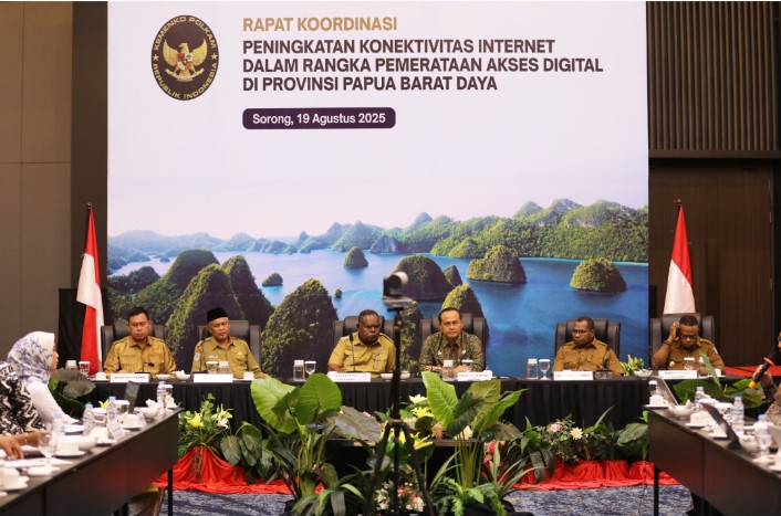 Rapat ini dipimpin oleh Marsma TNI Agus Pandu Purnama, Asisten Deputi Koordinasi Telekomunikasi dan Informatika Kemenko Polkam, dengan dukungan penuh Gubernur Papua Barat Daya Elisa Kambu, serta dihadiri oleh Bupati/Wali Kota se-Papua Barat Daya, perwakilan PLN, operator seluler nasional, asosiasi penyedia infrastruktur digital, dan lebih dari 85 peserta lintas pemangku kepentingan.
