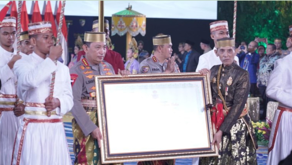 Selain itu, Kapolri juga diberikan pin emas, sertifikat dan pusaka Luwu yang berjenis sapukala dengan nama La Sumange’ Getteng yang artinya semangat yang tegas, konsisten, tidak ragu dan bimbang dalam menegakkan keadilan dan kebenaran.