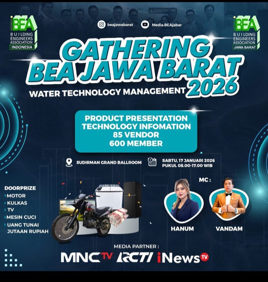 BANDUNG || Building Engineer Association (BEA) Provinsi Jawa Barat kembali menggelar event Gathering BEA Jawa Barat 2026. Dalam event yang akan digelar pada Sabtu, 17 Januari 2026 mendatang, mengangkat tema “Water Technology Management”, sebagai bentuk kepedulian terhadap pengelolaan sumber daya air dan penerapan teknologi efisien di dunia engineering.