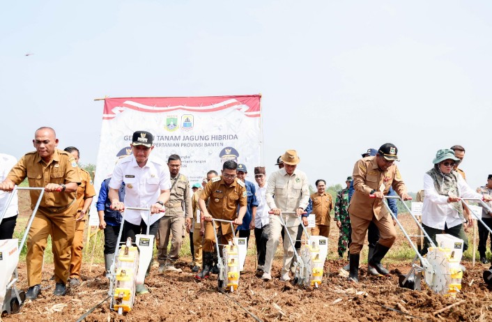 LEBAK || Gubernur Banten Andra Soni mencanangkan gerakan tanam jagung di Kecamatan Maja, Kabupaten Lebak. Program ini ditujukan untuk mendorong swasembada jagung sekaligus menjadikan Banten sebagai produsen utama jagung nasional.