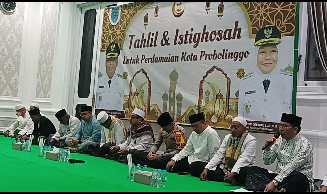 KOTA PROBOLINGGO || Doa bersama digelar untuk Perdamaian Kota Probolinggo di Rumah Jabatan Wali Kota Probolinggo. Kegiatan ini diikuti ratusan orang dan dihadiri jajaran Forkopimda, legislatif dan elemen masyarakat.