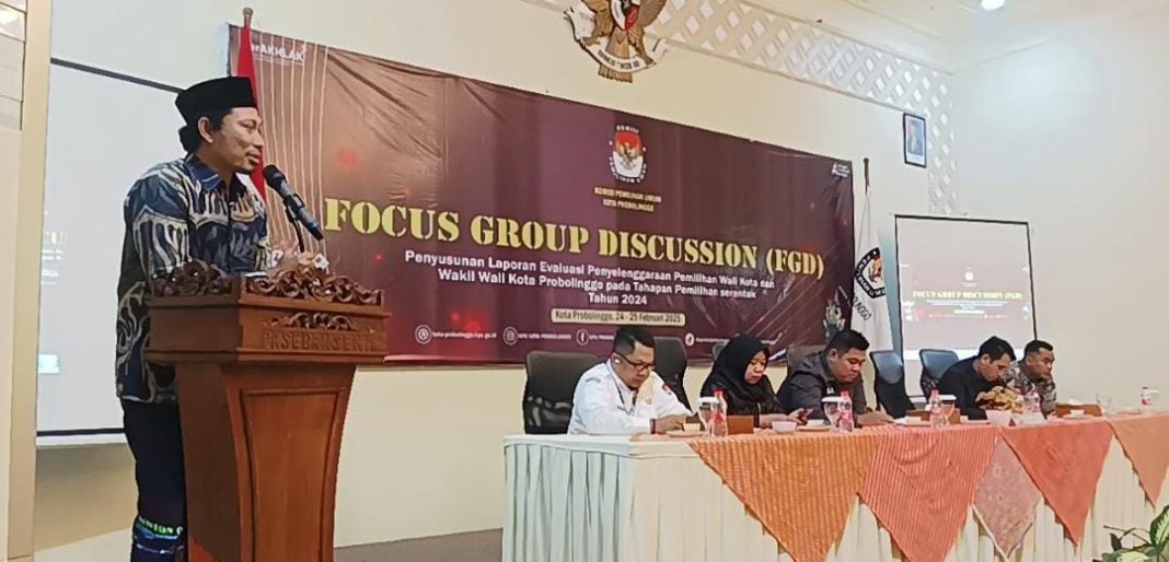 Kota Probolinggo || Komisi Pemilihan Umum (KPU) Kota Probolinggo menggelar Focus Group Discussion (FGD) dalam rangka penyusunan laporan evaluasi penyelenggaraan Pemilihan Walikota dan Wakil Walikota Probolinggo pada tahapan Pemilihan Serentak 2024. Acara ini berlangsung selama dua hari, Senin dan Selasa, 24–25 Februari 2025, di Bale Hinggil, Jalan Dr. Sutomo, Kecamatan Kanugaran Kota Probolinggo.