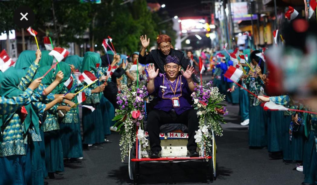 Menariknya, para delegasi yang menggunakan pakaian khas Kota Kediri itu diarak menaiki becak hias dari hotel menuju venue acara. Momen ini menjadi simbol keakraban dan penghargaan terhadap budaya lokal, menciptakan suasana guyub yang mengesankan