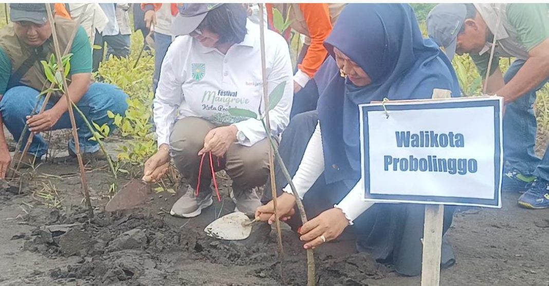 Kegiatan yang dilakukan ini mencakup penanaman ratusan pohon mangrove di kawasan Pantai Permata Kelurahan Pilang yang melibatkan masyarakat dan pemerintah, Selasa (25/2/25) pagi.