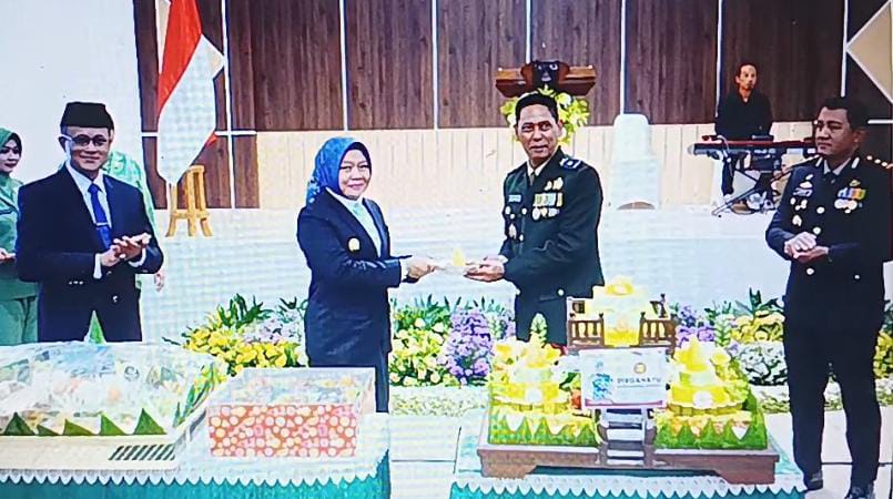 Usai upacara, kegiatan dilanjutkan dengan acara tasyakuran di aula Makodim. Suasana kebersamaan begitu terasa dalam momen pemotongan tumpeng oleh Kasdim, yang kemudian diberikan kepada Wakil Wali Kota Probolinggo Ina Dwi Lestari, serta jajaran Forkopimda dari dua wilayah teritorial Kodim 0820.