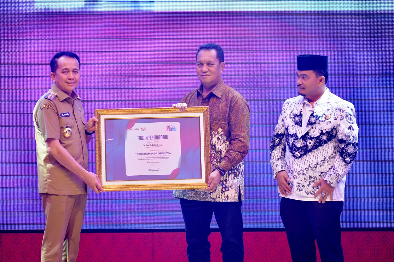 Kabarmetro.id, Medan || Penjabat (Pj) Gubernur Sumatera Utara (Sumut) Agus Fatoni menerima dua penghargaan pada kegiatan Sumut Inspiring Teacher 2024, yaitu Tokoh Inspiratif Indonesia dan Sahabat Guru.