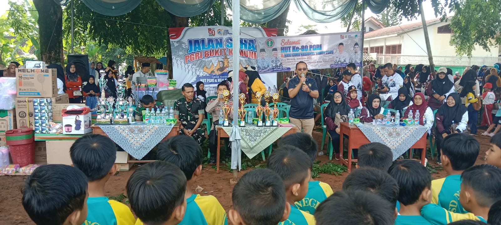 LAMPUNG UTARA || Dalam suasana penuh semangat, Persatuan Guru Republik Indonesia (PGRI) Kecamatan Bukit kemuning, Kabupaten Lampung Utara, merayakan Hari Ulang Tahun (HUT) ke-80 dan Hari Guru Nasional (HGN) Tahun 2025. Perayaan ini dipusatkan di Lapangan Dwikora Kecamatan Bukit kemuning dan dihadiri oleh ratusan guru dari berbagai jenjang pendidikan, mulai dari PAUD,TK, SD, SMP, se-Kecamatan Bukit kemuning, Sabtu (24/11/2025).