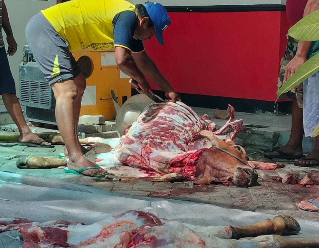 Penyembelihan hewan kurban dilakukan di Markas PMI (Palang Merah Indonesia) Jalan Sukarno Hatta , yang turut dihadiri Ketua PMI,Mega Guntara bersama Kepala Markas,Endar Setyo W.S,Hut beserta jajaran pengurus, Kamis (6/6/2025) pagi.