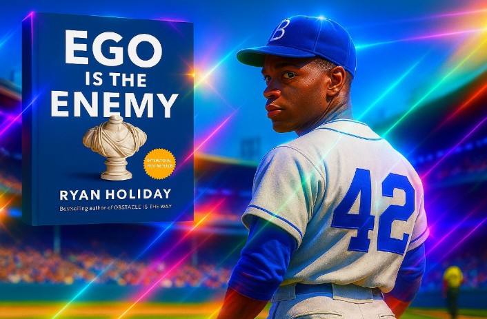 Holiday menempatkan Jackie Robinson sebagai teladan utama tentang bagaimana menaklukkan ego melalui pengekangan diri dan penyusunan strategi jangka panjang.