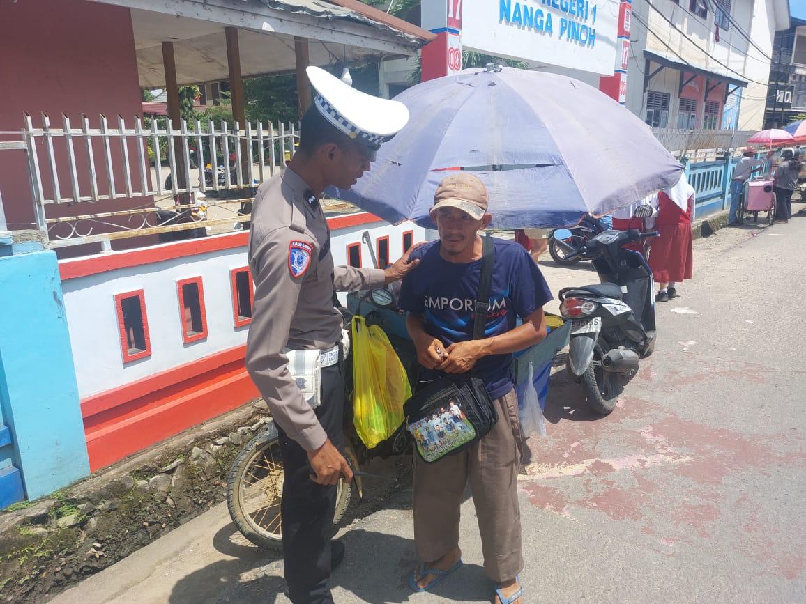 MELAWI || Kanit Turjawali Satuan Lalu Lintas (Sat Lantas) Polres Melawi, Aipda Herlan Marjan, memberikan himbauan kepada para pedagang keliling yang berjualan di tepi jalan provinsi, tepatnya di depan SMP Negeri 1 Nanga Pinoh.