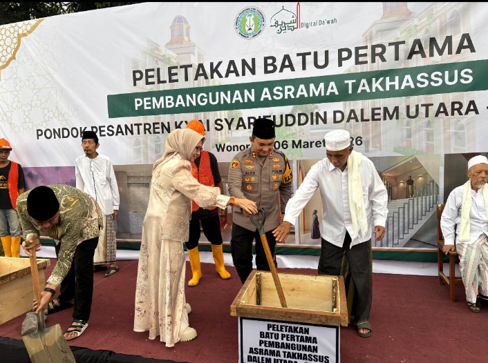 LUMAJANG || Kapolres Lumajang AKBP Alex Sandy Siregar menghadiri kegiatan peletakan batu pertama pembangunan Asrama Takhassus di Pondok Pesantren Syarifuddin, Desa Wonorejo, Kecamatan Kedungjajang, Kabupaten Lumajang, Jumat (6/3/2026).