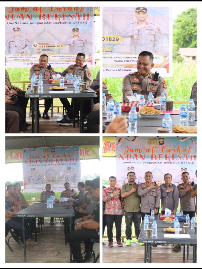 Jumat Curhat digelar di Langkau Menyadik yang berada di kebun jagung polres melawi di ramu dalam program prioritas polri Jumat Curhat meNerima pengadUAN BErkeluh KEsah (NUAN BEKESAH) sebagai wadah polri menerima informasi langsung dari masyarakat berkenaan dengan informasi gangguan keamanan.
