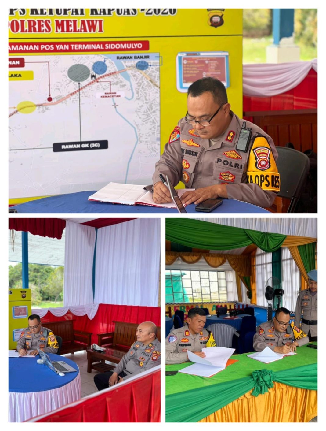 MELAWI || Kapolres Melawi AKBP Harris Batara Simbolon, S.I.K., S.H., M.Tr.Opsla selaku Ka Ops Terpusat Ketupat Kapuas 2026 di dampingi Kasat Lantas AKP Pipit Supriatna, S.H selaku Kapusdal Ops melaksanakan pemantauan personel yang menempati Pos Pelayanan Terminal AKDP Sidomulyo, Pos Pengamanan yang berada di Pos Lantas dan Pos Pelayanan Tahlud, Sabtu (14/3/2026).