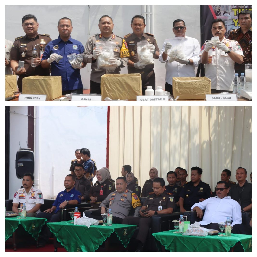 ” Hadir juga dalam kegiatan tersebut kasat markoba , kasat reskrim dan kasat lantas Polres Pasuruan yang ikut menyaksikan giat tersebut Kali ini Kejaksaan Negri Banhil memusnahkan sejumlah barangbukti dengan perkara yang memiliki kekuatan hukum yang tetap. Paling banyak kasus narkoba dengan 92 perkara dengan barang bukti 438,77 gram sabu,” ungkapnya Teguh.