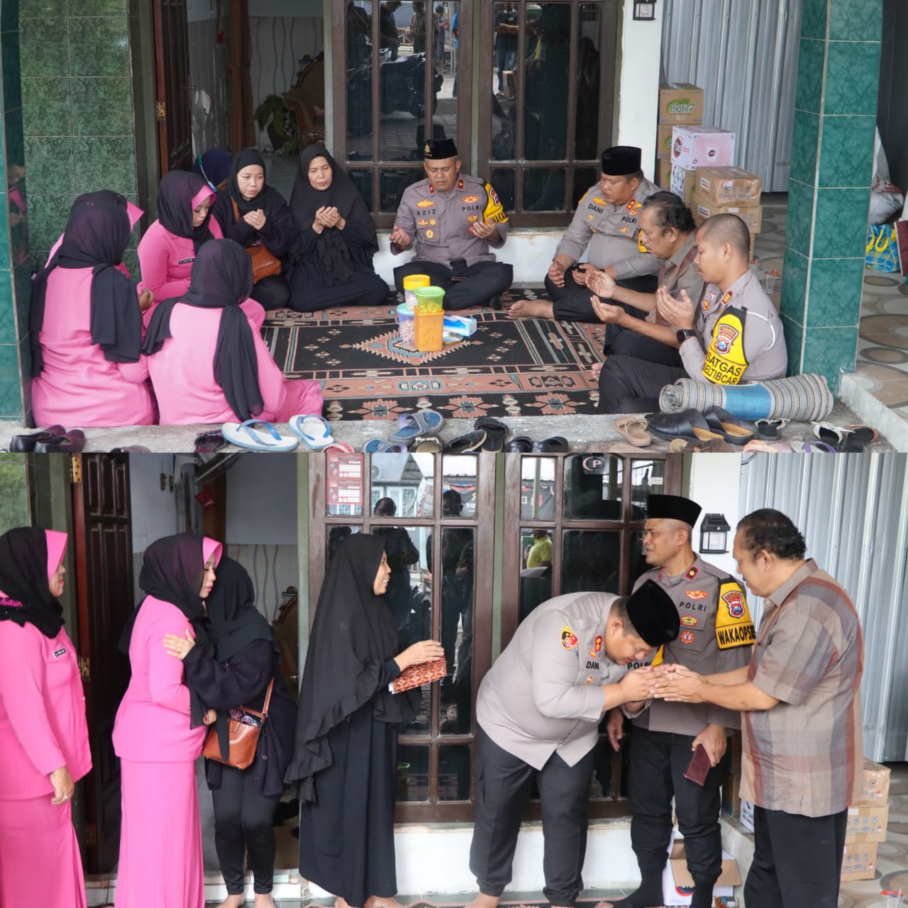 Dalam kesempatan tersebut, Kapolres didampingi Wakapolres, Kasat Lantas, serta Bhayangkari. Kehadiran mereka sebagai bentuk belasungkawa sekaligus menyerahkan santunan kepada keluarga korban.