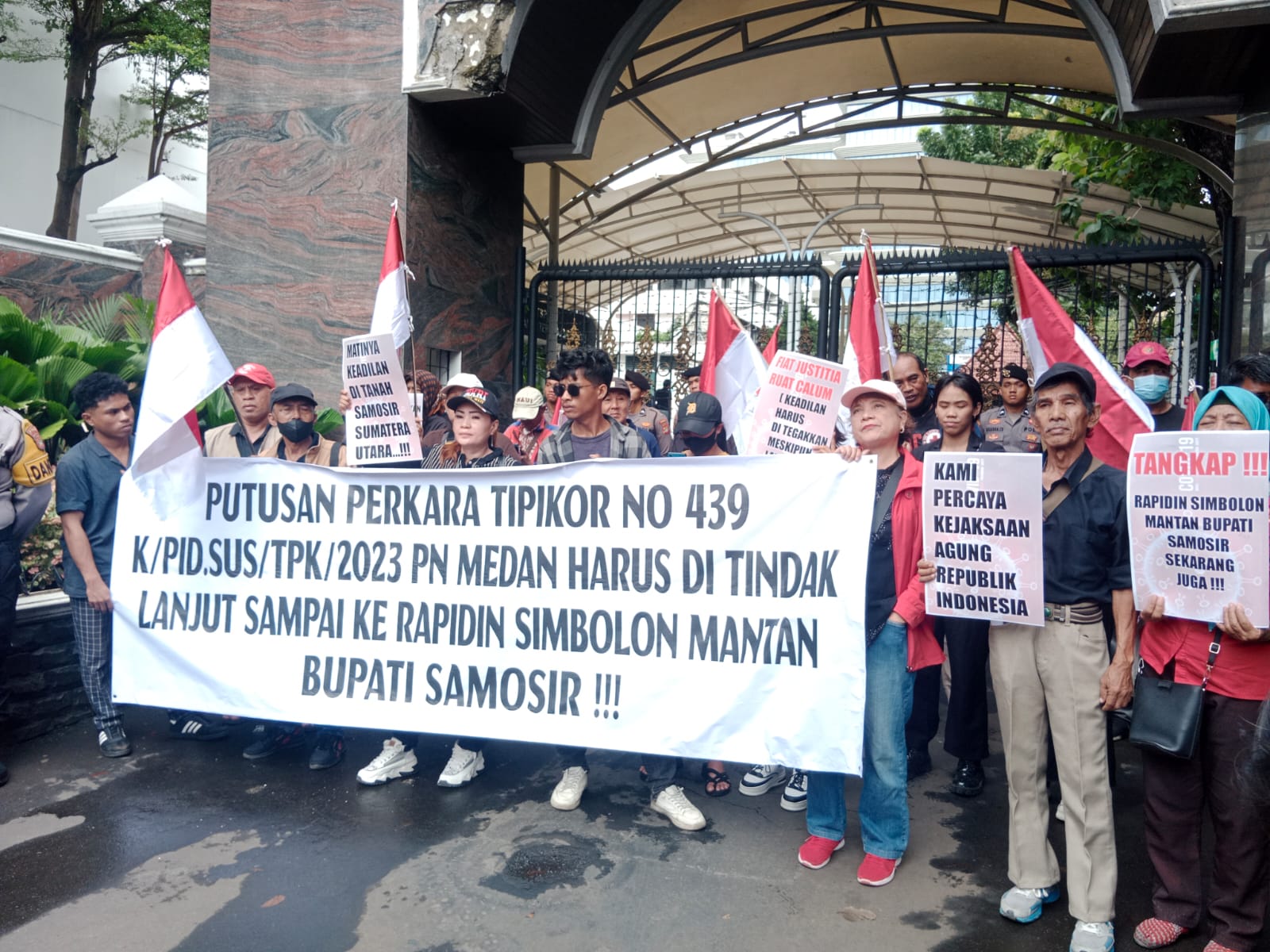 “Kita semua tahu bahwa hukum adalah panglima tertinggi di negeri ini. Karena itu, Kejaksaan Agung harus segera bertindak dan menangkap Rapidin Simbolon yang hingga kini masih bebas, bahkan duduk di parlemen,” tegas Oscar di hadapan para demonstran.