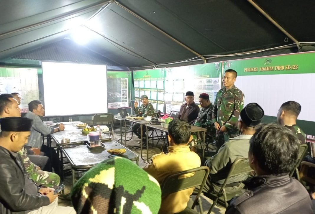 Lumajang || TMMD ke-123, Komandan Satuan Setingkat Kompi (SSK) yang tergabung dalam Satuan Tugas (Satgas) TNI Manunggal Membangun Desa (TMMD) ke-123 Kodim 0821/Lumajang menggelar evaluasi kegiatan di Pos Komando Taktis (Kotis), Minggu (23/2/2025). Evaluasi ini bertujuan untuk menilai capaian program serta merumuskan langkah strategis guna memastikan kelancaran dan keberhasilan TMMD di wilayah sasaran.