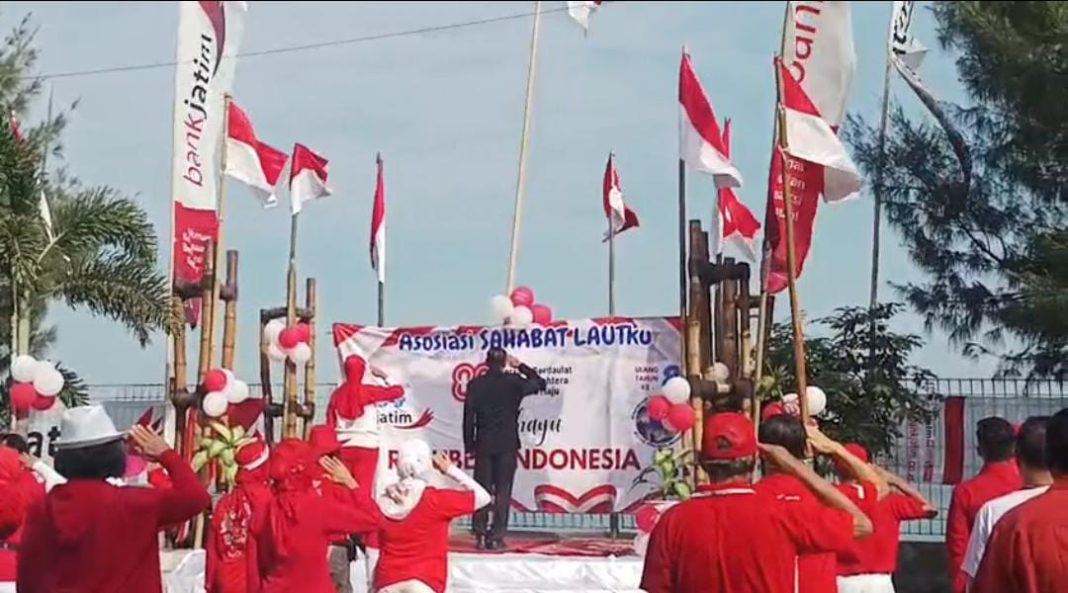 KOTA PROBOLINGGO || Puluhan peserta yang tergabung dalam Komunitas Sahabat Laut (SL) menggelar upacara HUT Kemerdekaan ke-80 RI di Wilayah PPP Mayangan Probolinggo Kecamatan Mayangan.