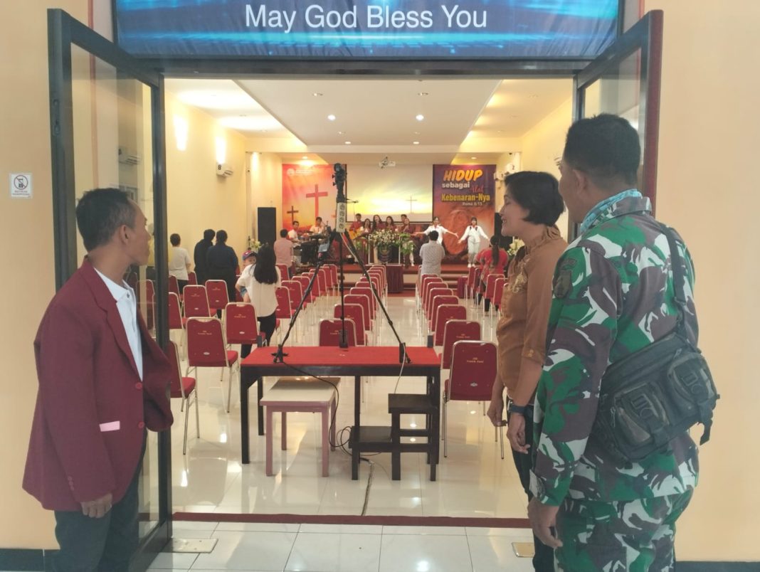 Kabarmetro.id, Kota Probolinggo || Kodim 0820/Probolinggo melalui Koramil jajaran melakukan pengawalan dan pengamanan jalannya kegiatan keagamaan umat Kristen yang melaksanakan ibadah hari Minggu di Gereja Bethel Indonesia (GBI) Pondok Daud di wilayah Kelurahan Mangunharjo, Kota Probolinggo.