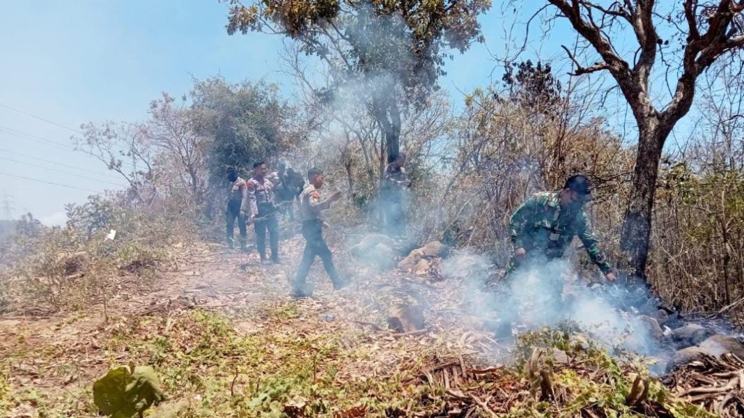 Anggota Koramil 0820/16 Paiton, Serka Ikram mengatakan, bahwa pihaknya ikut membantu dalam pemadaman kebakaran hutan dan lahan di seputaran obvit gitet T2 Desa Bhinor, Kecamatan Paiton .