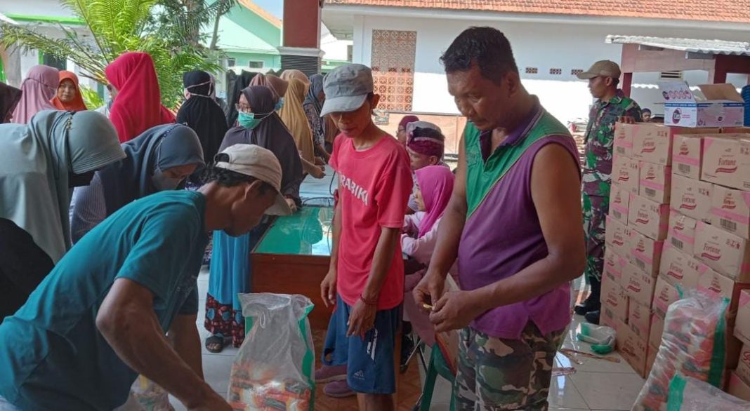 PROBOLINGGO || Anggota Koramil 0820/15 Pajarakan Koptu Suryadi melaksanakan pengamanan dalam gelaran pasar murah atau operasi pasar bersubsidi untuk masyarakat di wilayah Kecamatan Pajarakan, Kabupaten Probolinggo, Sabtu (8/3/25).