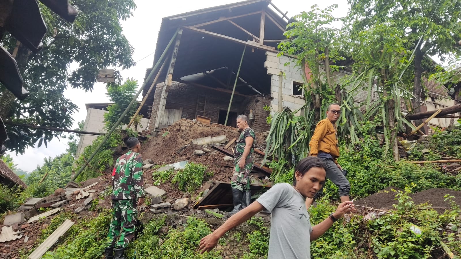 “Rumah bagian belakang (Dapur) yang mengalami kerusakan akibat longsornya tanggul penahan tanah adalah milik Munir (48) warga Dusun Bendungan RT 6 RW 3 Desa Ranon, Kecamatan Pakuniran, Kabupaten Probolinggo,” kata Sertu Priyo.