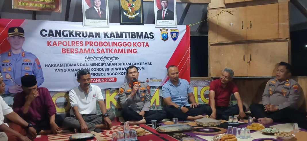 KOTA PROBOLINGGO || Dalam upaya mempererat sinergi dan meningkatkan keamanan lingkungan, Kapolres Probolinggo Kota AKBP Rico Yumasri, menggelar kegiatan “Cangkrukan Kamtibmas ” bersama warga RW 07, Kelurahan Jati, Kecamatan Mayangan, Senin (6/10/2025 ) malam.