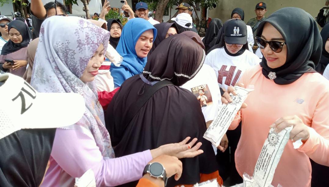Selain ikut senam sehat bersama, Ketua TP PKK Kota Probolinggo dr Evariani Aminuddin melihat lebih dekat proses pembuatan tempe dan membagikan tempe gratis kepada ratusan masyarakat yang hadir.