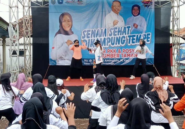 KOTA PROBOLINGGO || Ketua TP PKK Kota Probolinggo dr Evariani Aminuddin hadir langsung dalam gelaran senam sehat bersama Kader PKK dan Posyandu di Kampung Tempe RW 2 Kelurahan Sumbertaman, Kecamatan Wonoasih, Minggu (9/11/2025). pagi.