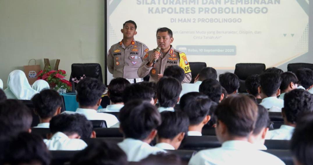 Imbauan AKBP Latif ini disampaikan saat mendatangi MAN 2 Probolinggo dalam rangka penyuluhan pelajar untuk menjaga kamtibmas di wilayah setempat. Turut mendampingi, Kasat Lantas AKP Safiq Jundhira Zulkarnaen, dan anggota Satbinmas, Rabu (10/9/2025).