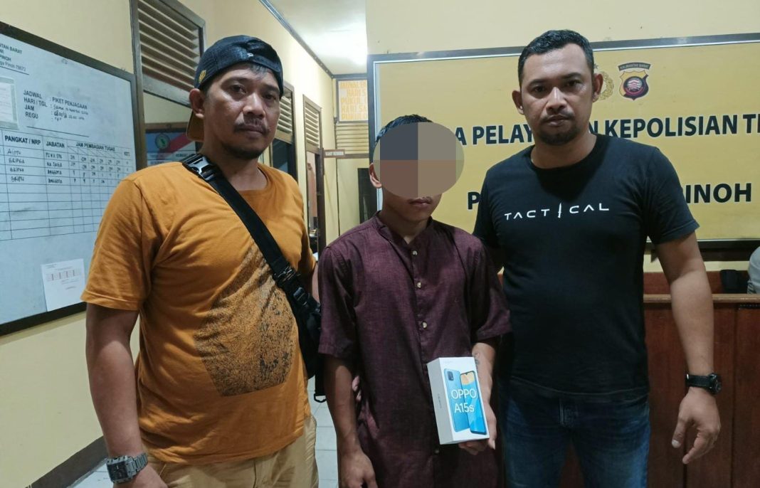 Kabarmetro.id, Melawi || Unit Reskrim Polsek Nanga Pinoh mengamankan seorang terduga pelaku pencurian berinisial AG di rumahnya yang terletak di Dusun Tanjung Indah, Desa Tanjung Niaga, Kecamatan Nanga Pinoh, Kabupaten Melawi. Barang bukti yang diamankan berupa sebuah HP Oppo A15s, Selasa (13/8/24).