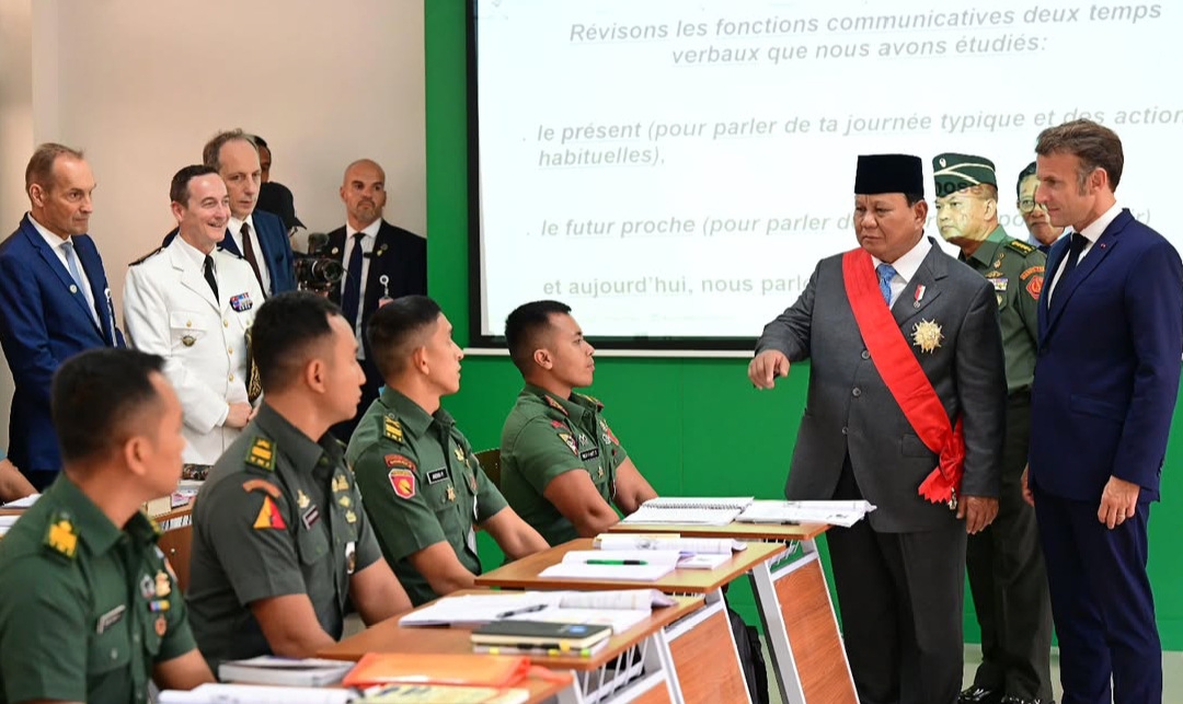 Namun tidak semua bagian lawatan itu bersifat simbolik. Di Akademi Militer Magelang, Macron mengunjungi kelas bahasa Prancis dan berbicara langsung dengan para taruna. Ia mendengarkan kalimat yang belum sempurna, tetapi penuh niat. “Bagus sekali,” katanya dalam bahasa Inggris. “Terima kasih sudah belajar bahasa kami.”