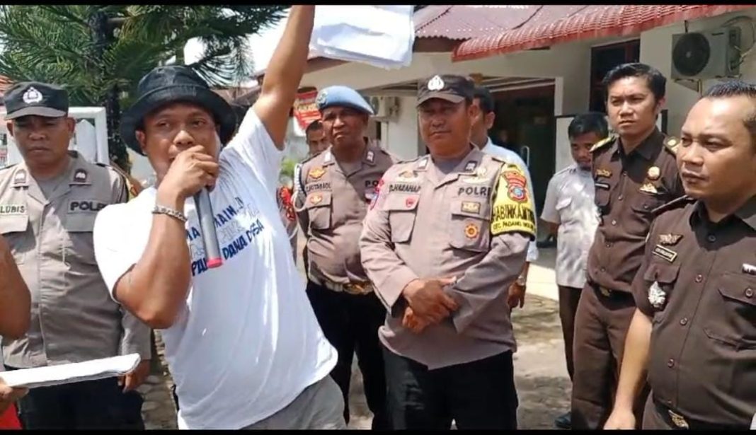 Sahrial Harahap ketua Masyarakat Demokrasi Empatbels Tabagsel selaku kordinator aksi meminta agar kejaksaan Negeri Padang Lawas Utara jangan membodoh bodohi masyarakat desa batu sundung dimana kasus laporan PSR yang sudah berjalan selama tujuh bulan agar di usut tuntas yang hingga saat ini belum menemui titik terang.