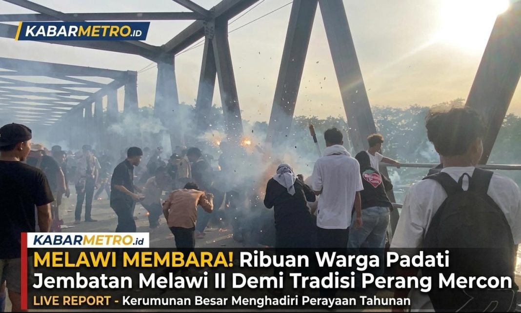 MELAWI || Sabtu Suasana di Jembatan Melawi II yang menghubungkan Kecamatan Nanga Pinoh dan Kecamatan Pinoh Utara berubah menjadi lautan manusia. Sejak pukul 15.00 WIB, ribuan warga Kabupaten Melawi tumpah ruah demi menyaksikan tradisi ekstrem yang memacu adrenalin: Perang Mercon, Sabtu (21/3/2026).
