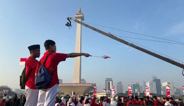 JAKARTA || Di bawah teriknya matahari siang, Monumen Nasional menjadi arena pesta rakyat. Minggu (17/8/2025), ribuan warga tumpah ruah di lapangan luas, ikut serta dalam lomba-lomba khas 17-an: tarik tambang, makan kerupuk, balap karung, enggrang, hingga panjat pinang. Dari anak-anak berseragam merah putih, remaja, sampai orang tua yang nekat turun gelanggang, semua larut dalam keriuhan.