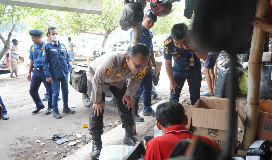 KOTA PROBOLINGGO || Kapolres Probolinggo Kota AKBP Oki Ahadian Purwono, S.I.K., M.H., didampingi Kepala Kantor KSOP Kelas IV Probolinggo, I Gusti Agung Komang Arbawa, S.H., M.H., dan anggota Pos Pengamanan Terpadu Pelabuhan pantau jalur penyeberangan warga Gili Ketapang (tradisi petolekoran) di dermaga Pelabuhan Tanjung Tembaga Kota Probolinggo.