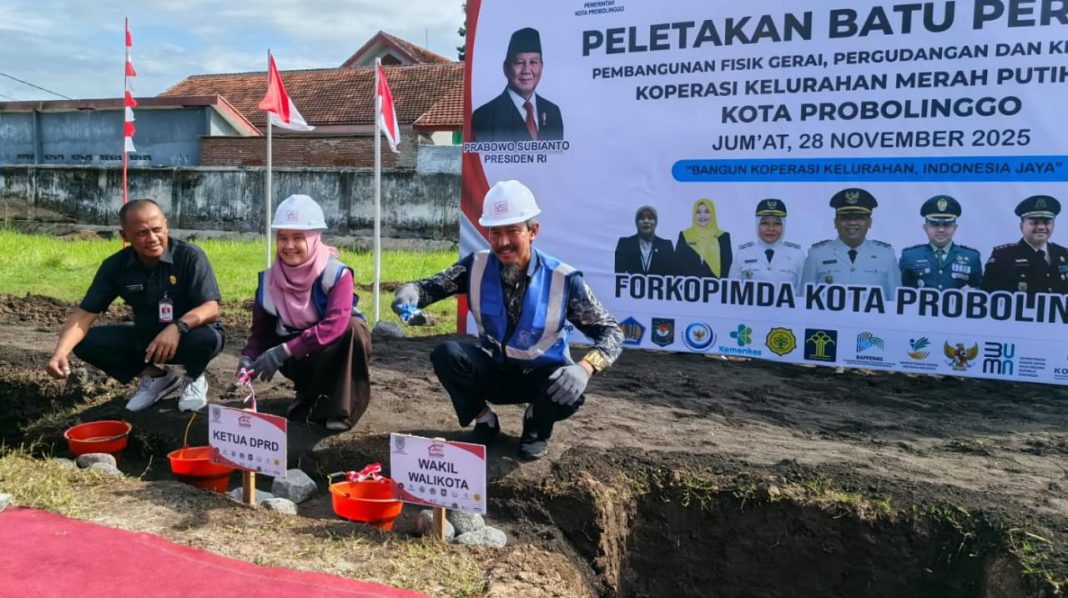 KOTA PROBOLINGGO || Pemerintah Kota Probolinggo terus memperkuat sinergi dengan pemerintah pusat dalam mendukung program nasional pemberdayaan ekonomi rakyat. Hal itu ditandai dengan peletakan batu pertama pembangunan gerai, pergudangan dan kelengkapan Koperasi Merah Putih yang berlokasi di RW 02 Kelurahan Jati, Kecamatan Mayangan lusa lalu.