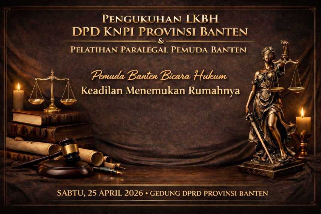 BANTEN || Dewan Pimpinan Daerah Komite Nasional Pemuda Indonesia (DPD KNPI) Provinsi Banten akan menggelar acara Pengukuhan Lembaga Konsultasi dan Bantuan Hukum (LKBH) DPD KNPI Provinsi Banten yang dirangkaikan dengan Pelatihan Paralegal, pada Sabtu pukul 10.00 WIB, bertempat di Gedung DPRD Provinsi Banten.