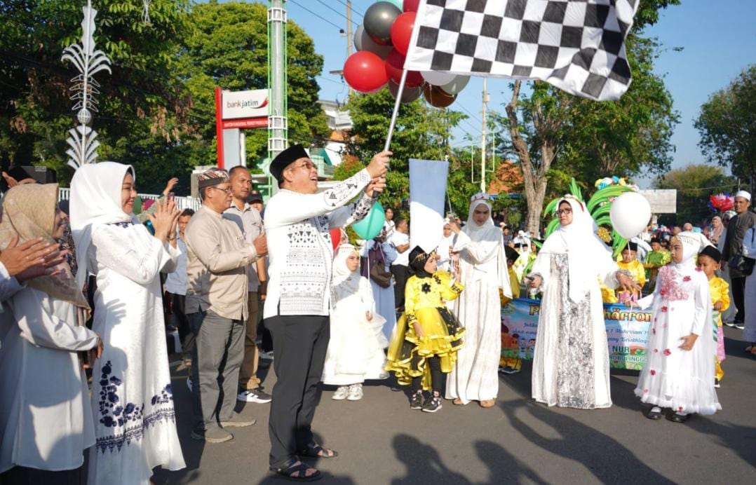 KOTA PROBOLINGGO || Keceriaan mewarnai Pawai Muharram TK/RA/BA se-Kota Probolinggo di depan Kantor Wali Kota Probolinggo.