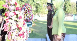 Setelah itu, dilakukan peletakan karangan bunga oleh Kajari Kota Probolinggo di Monumen Taman Makam Pahlawan sebagai simbol penghormatan dan penghargaan atas jasa-jasa mereka.