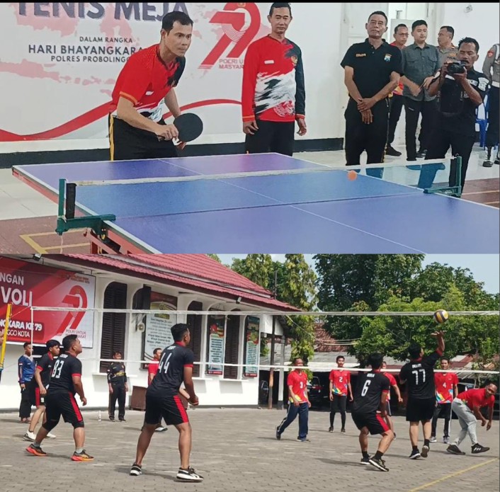 KOTA PROBOLINGGO || Dalam rangka memperingati Hari Ulang Tahun Bhayangkara ke-79, Polres Probolinggo Kota menggelar pertandingan bola voli dan tenis meja yang berlangsung mulai tanggal 23 hingga 25 Juni 2025. Kegiatan ini diselenggarakan di Lapangan Apel Polres Probolinggo Kota, dan diikuti oleh perwakilan tim dari berbagai satuan kerja, polres jajaran, Selasa (24/6/2025) pagi. :
